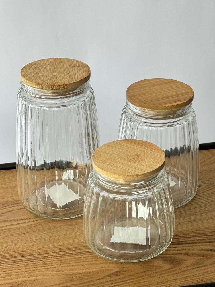 - يأتي كل وعاء بغطاء خشبي طبيعي من الخيزران، مصمم ليمنح لمسة دافئة متناسقة مع الديكور الحديث.