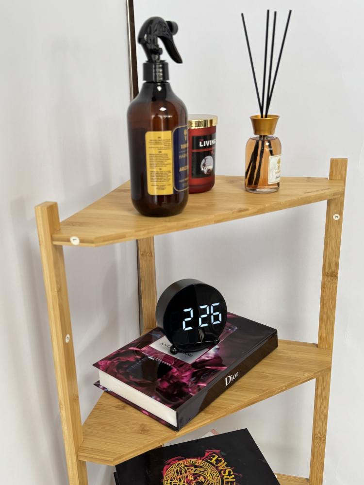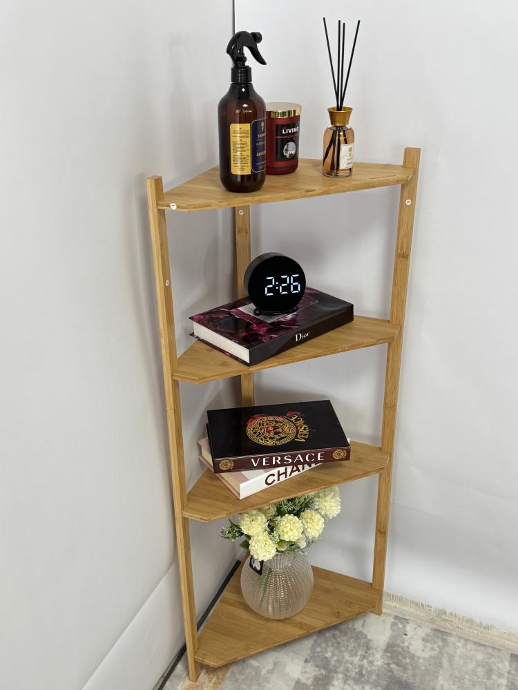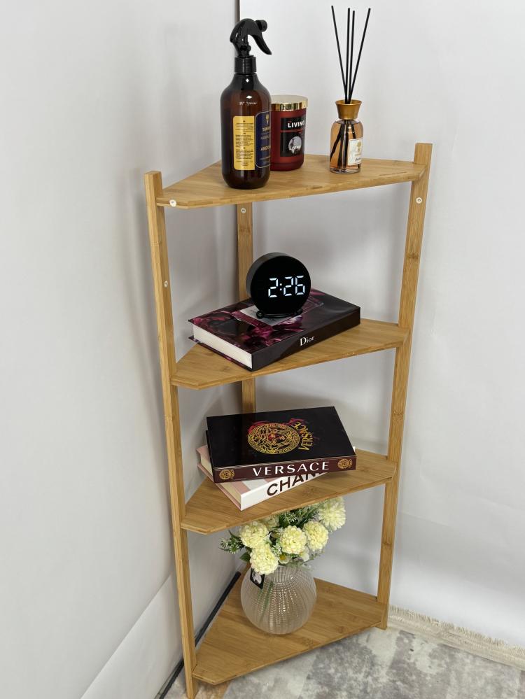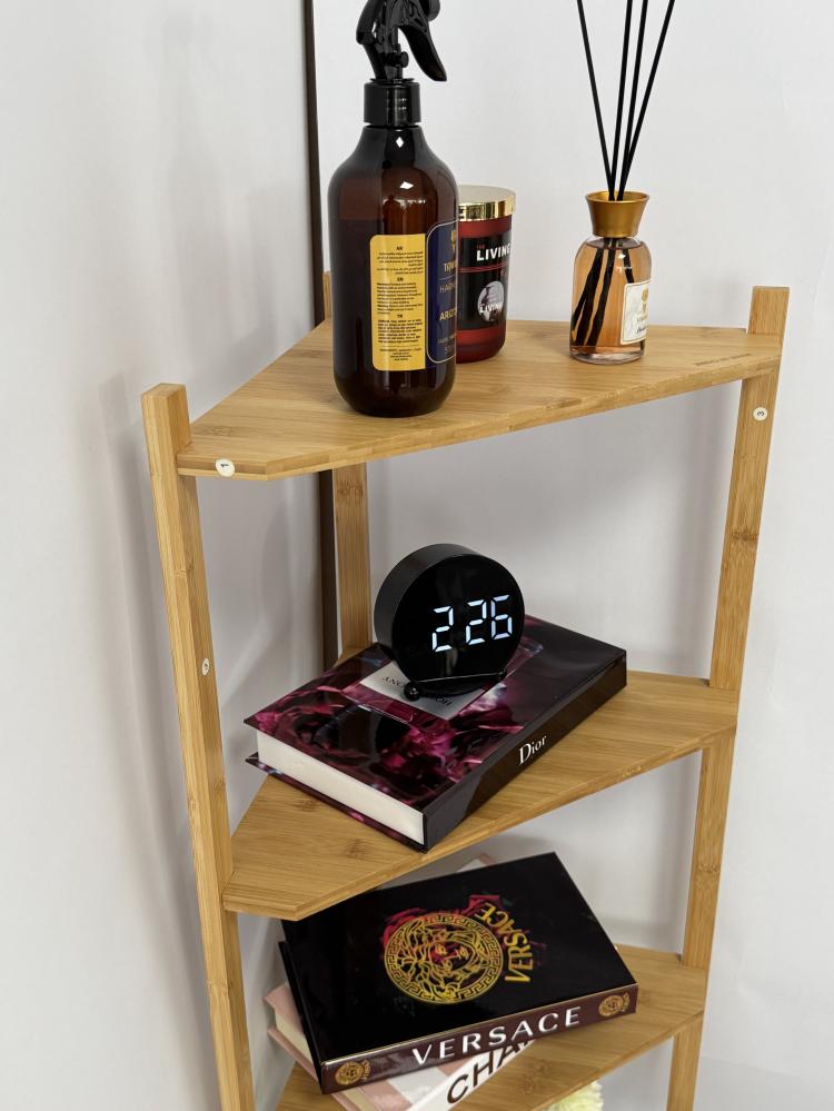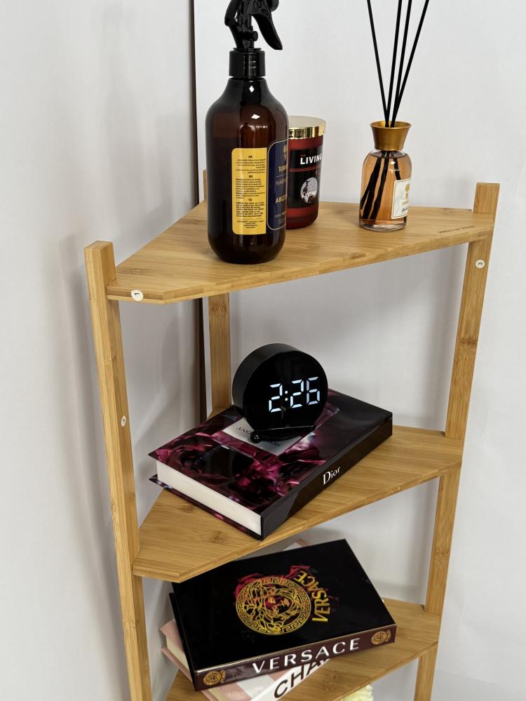 - الرف يتميز بتصميم زاوية ذكي يوفر استغلالاً مثالياً للمساحات الضيقة أو الزوايا المهملة. يتكوّن من 5 طبقات متدرجة بأبعاد متناسقة .