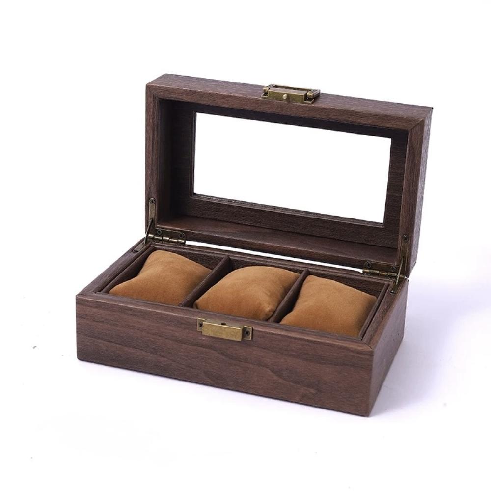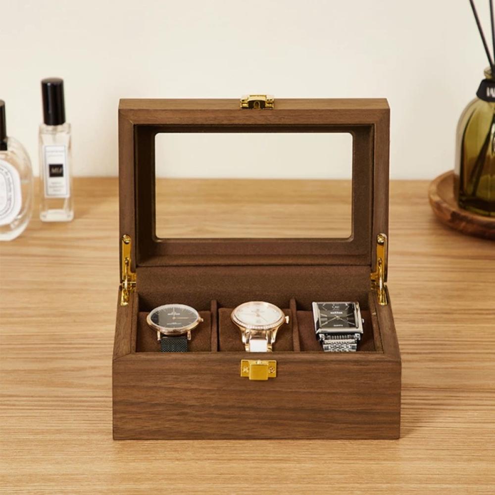- علبة خشبية أنيقة لحفظ الساعات أو الإكسسوارات، تجمع بين الفخامة والعملية.