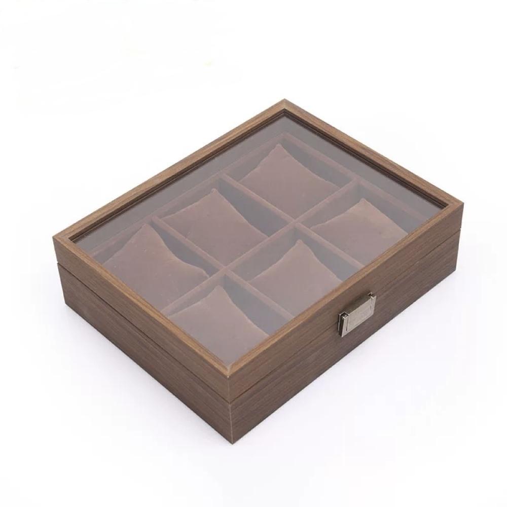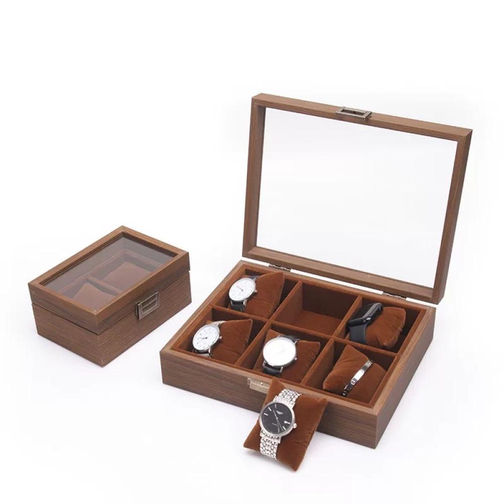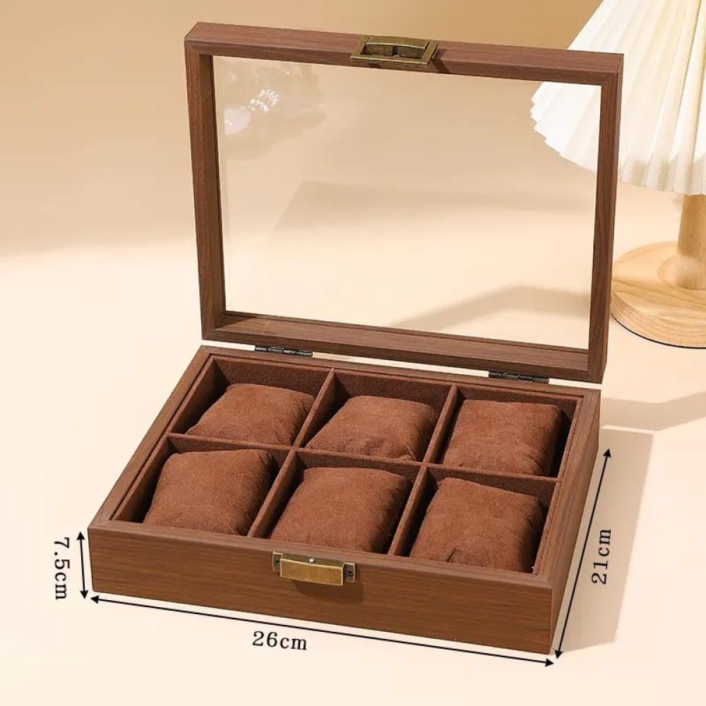- علبة خشبية أنيقة لحفظ الساعات أو الإكسسوارات، تجمع بين الفخامة والعملية.