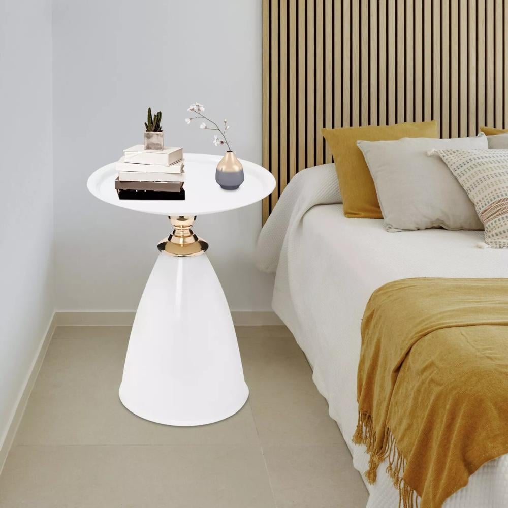 طاولة قهوة جانبية مستديرة - لون سكّري مع لمسة ذهبية أنيقة