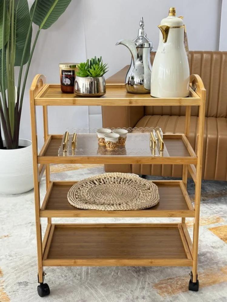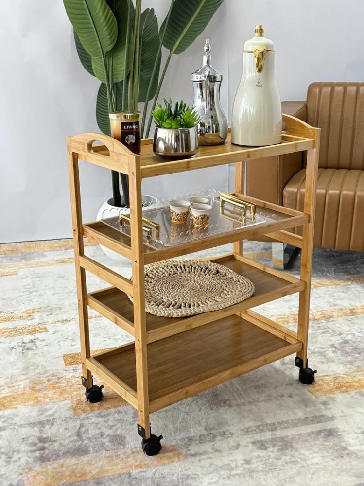 تُقدم هذه العربة الخشبية المتنقلة حلاً أنيقًا وعمليًا لتقديم المشروبات أو تنظيم أدوات الضيافة داخل المنزل أو المكتب. مصممة بعناية لتجمع بين الوظيفة والجمال، وتتميز بالآتي: