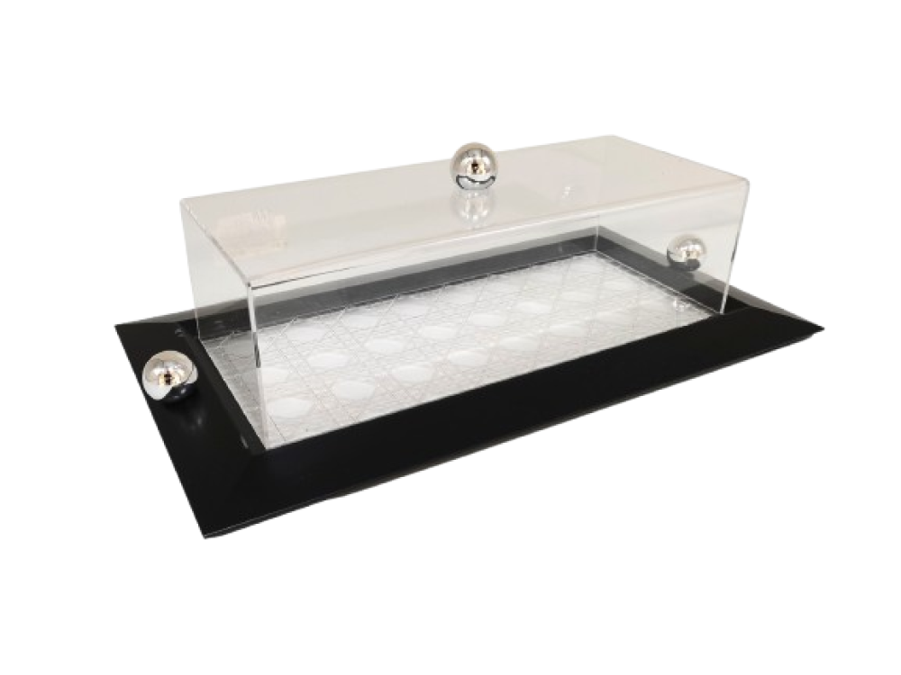 علبة تقديم حلوبات مستطيلة أكريلك بغطاء شفاف