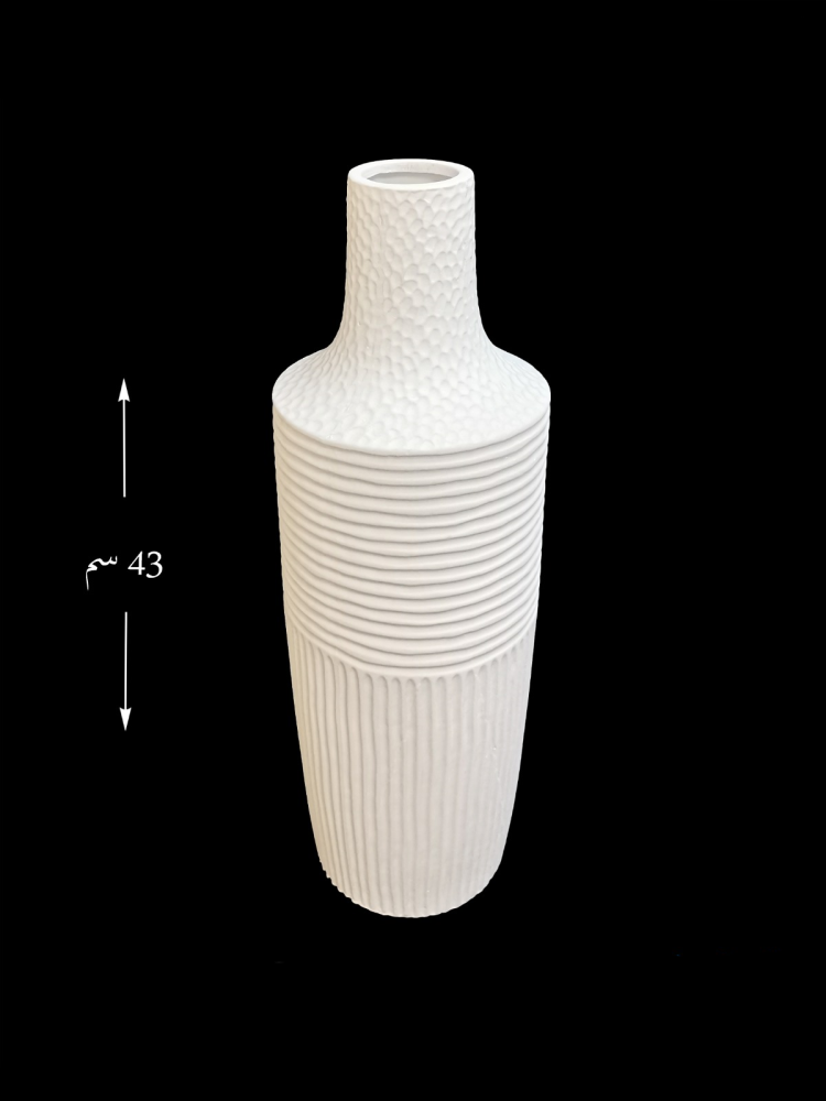 فازة سيراميك أبيض ، لإضافة لمسة فنية لديكور منزلك ، ارتفاع 43 سم .