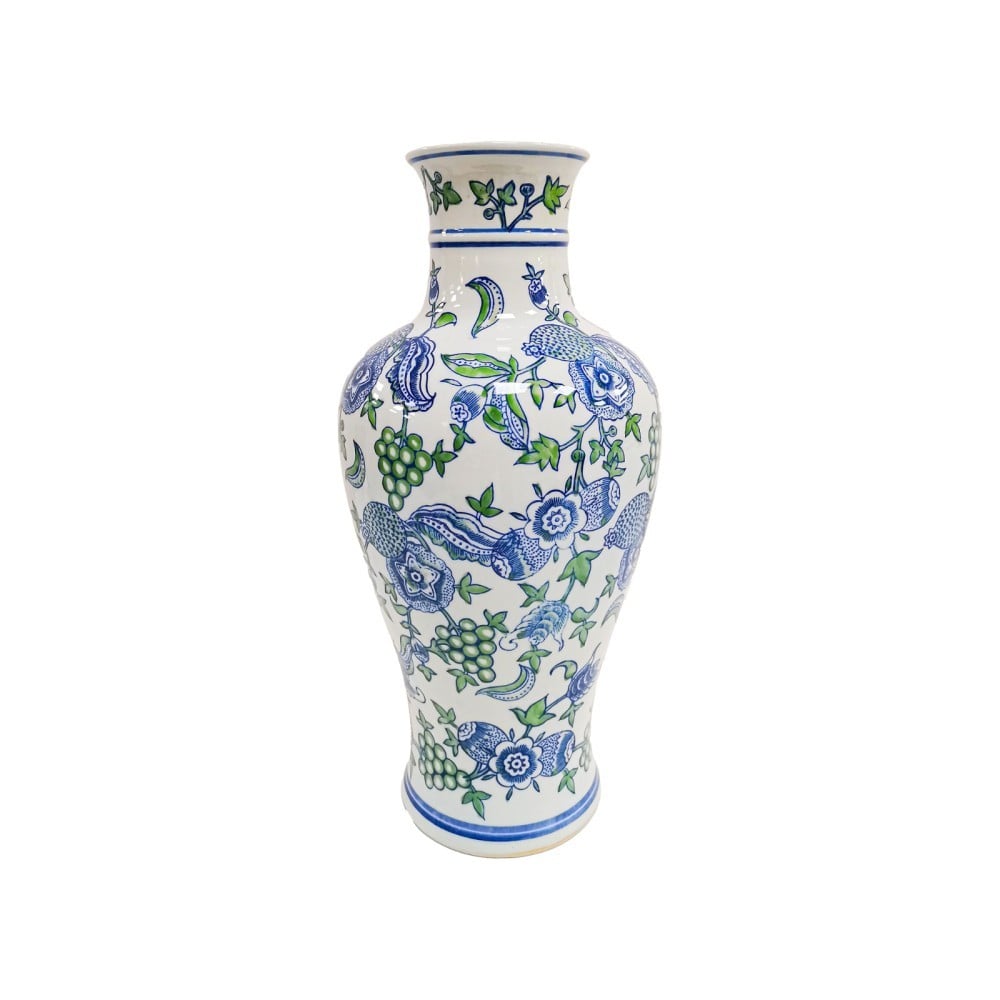 فازة سيراميك إيطالية بتصميم فاخر وزخارف زرقاء وخضراء