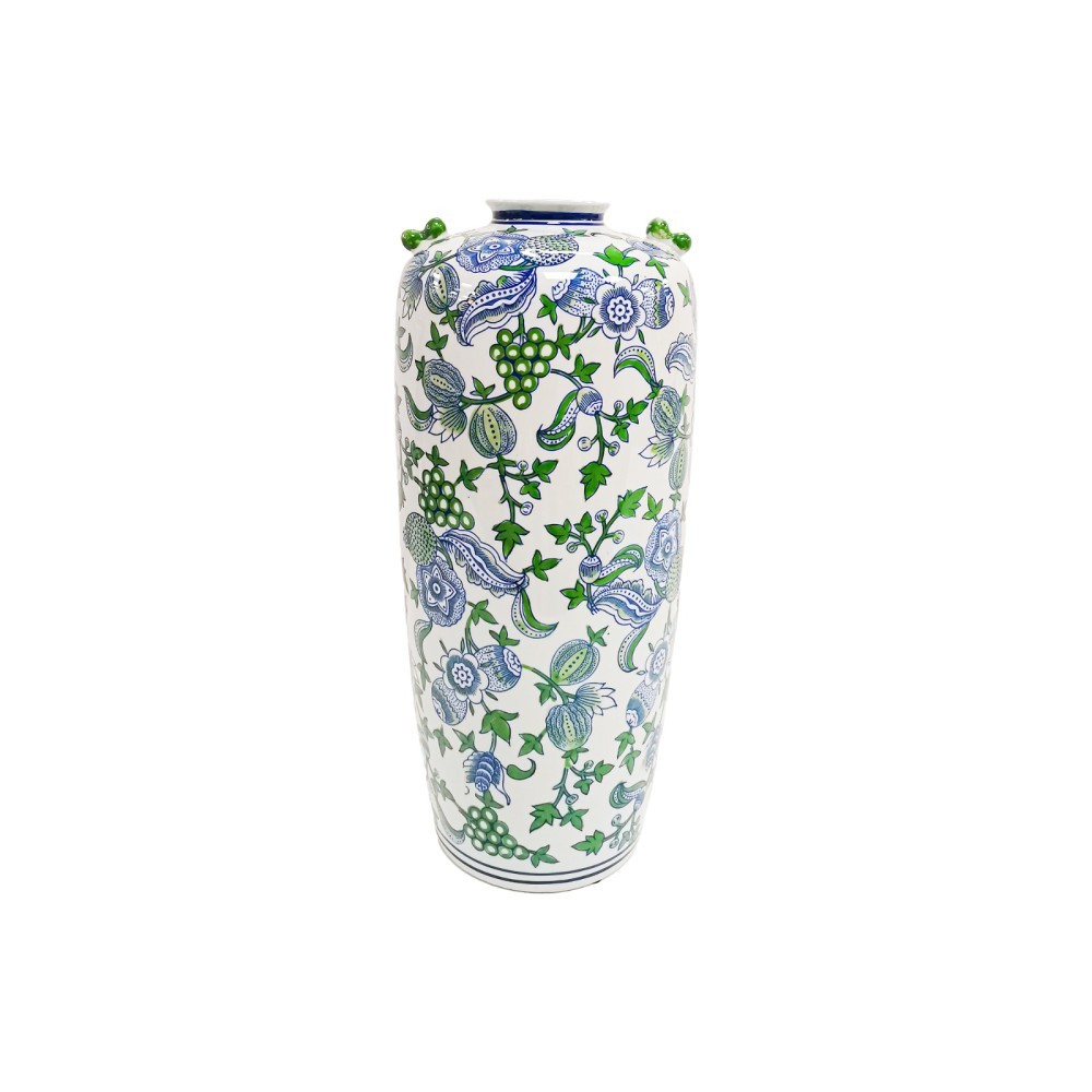 فازة سيراميك على الطراز الإيطالي مزخرفة باللون الأزرق والأخضر :