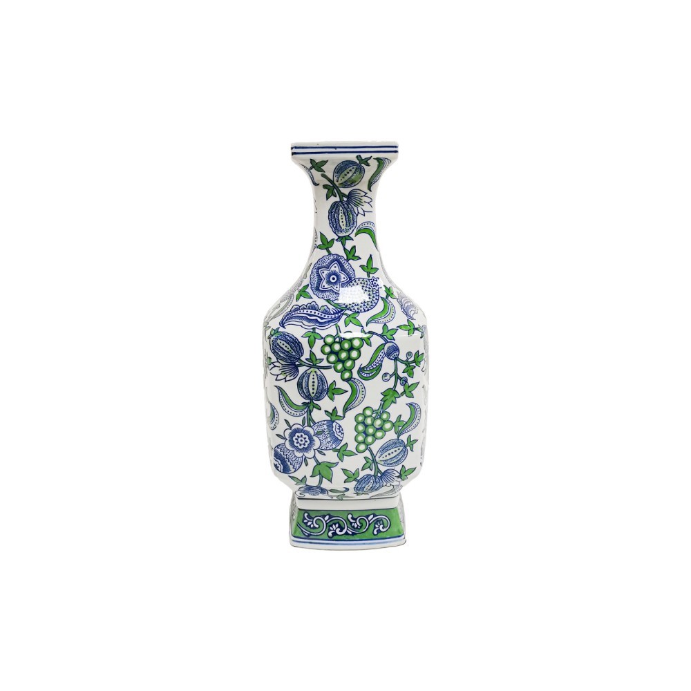 فازة سيراميك على الطراز الإيطالي مزخرفة باللون الأزرق والأخضر :