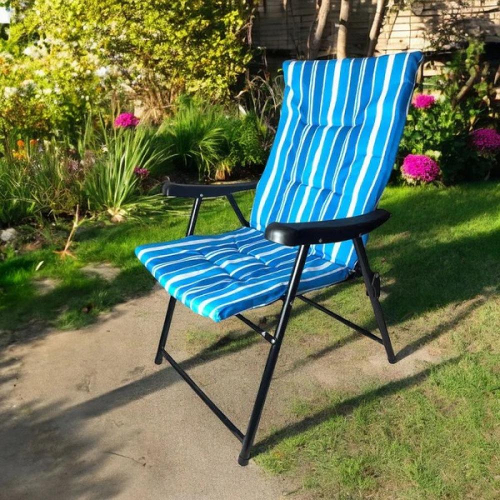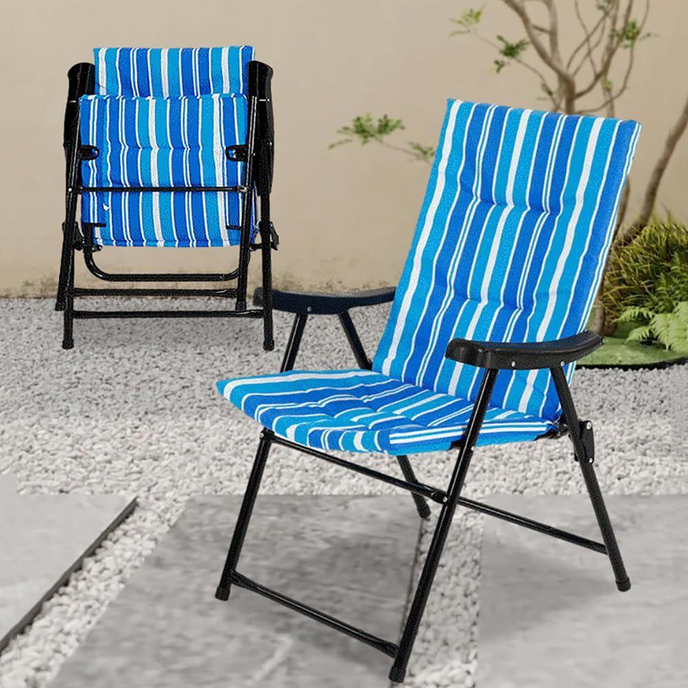 كرسي بحر قابل للطي – تصميم مخطط أبيض أزرق فاتح