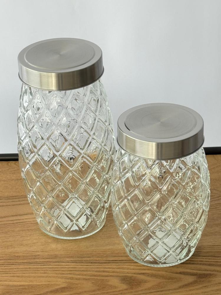 - تم تصميم هذه العبوات لتناسب الاستخدام اليومي أو الاستخدام كعنصر ديكوري في المطبخ أو غرفة المعيشة. الأغطية المعدنية تضيف لمسة صناعية أنيقة، مع لمسة نهائية مقاومة للصدأ.