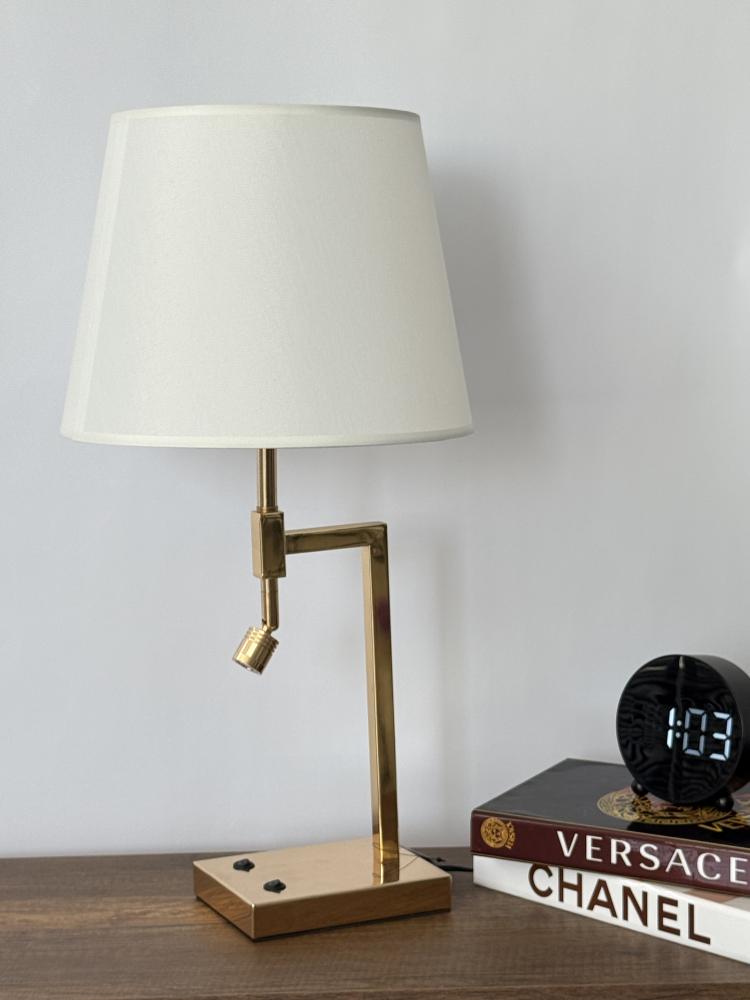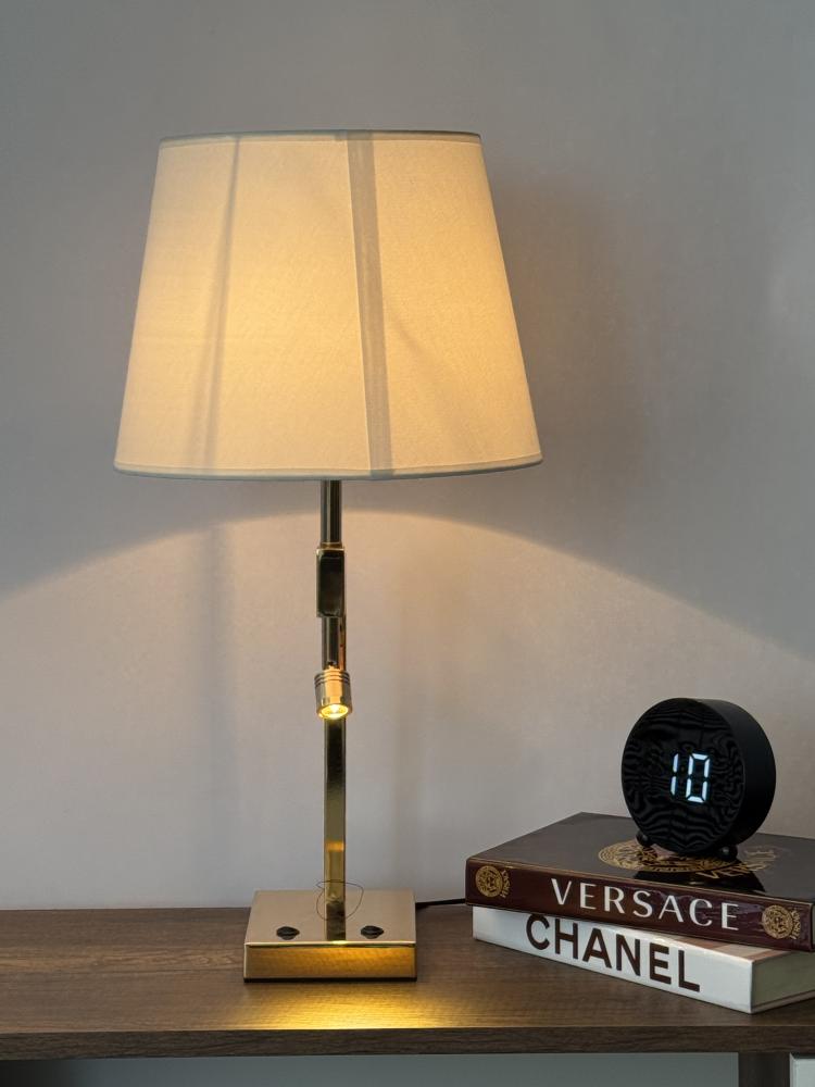 مصباح طاولة أنيق بإضاءة مزدوجة وقاعدة ذهبية فاخرة